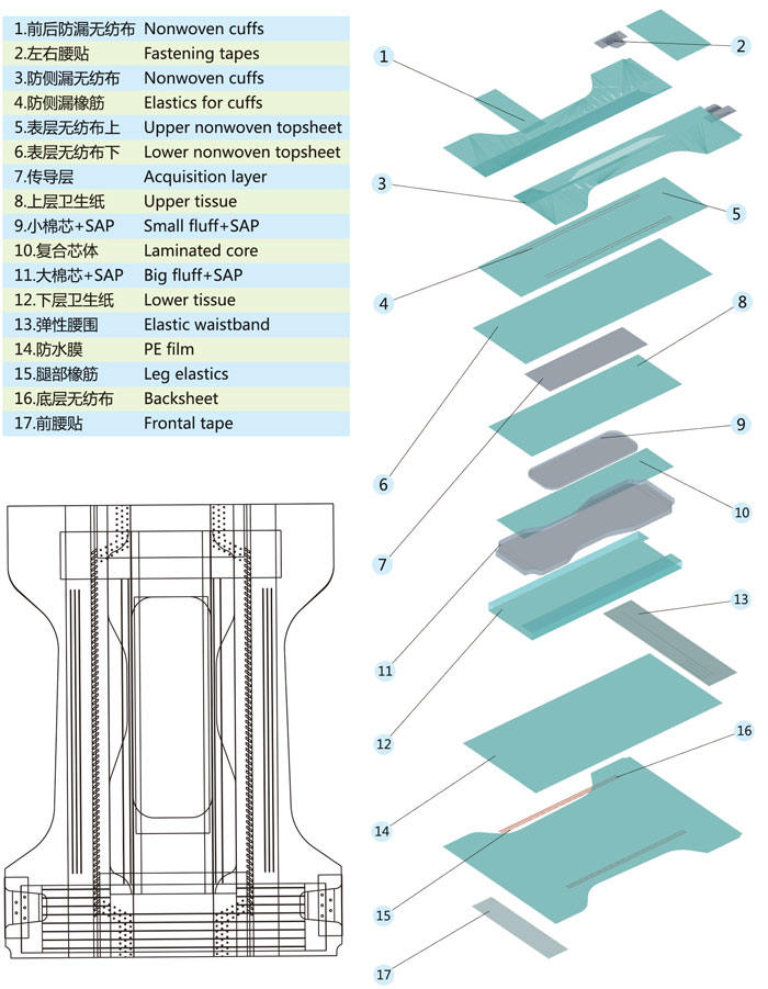 Speed range500 - 800 PPMSAP applicator is divided into two regions feeding, which can be realized by adding two different SAP.Sand-glass folding unit, can easily switch between the sand glass product compatible regular product.3D Top-sheet embossing system, can make the product surface material in 3D…